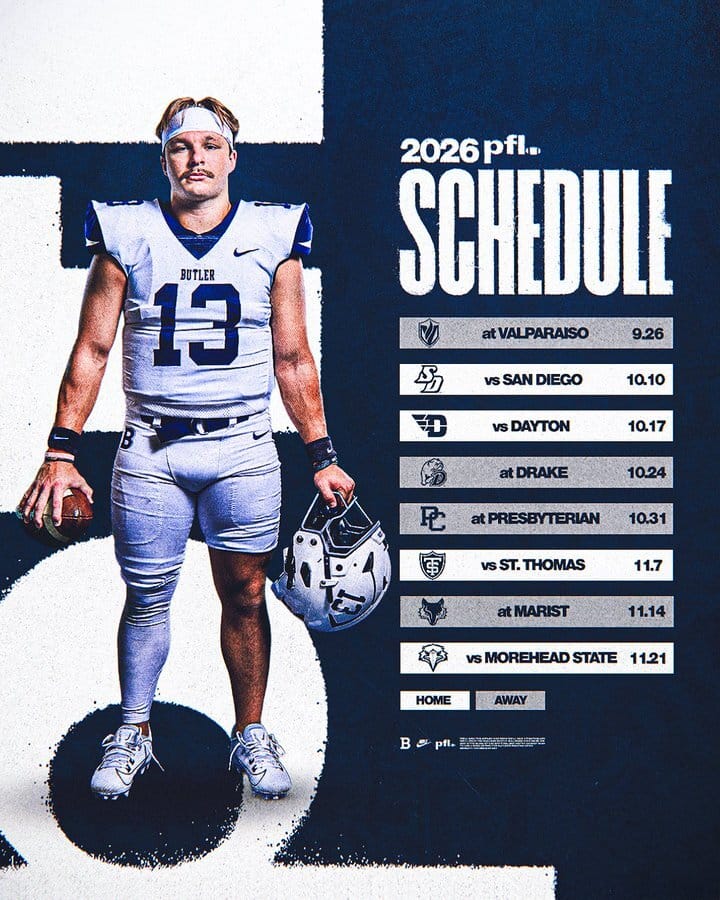 In conjunction with the Pioneer Football League, Butler football has announced its 2026 conference schedule. Butler will host four league games at the Bud & Jackie Sellick Bowl and will play four conference road games.